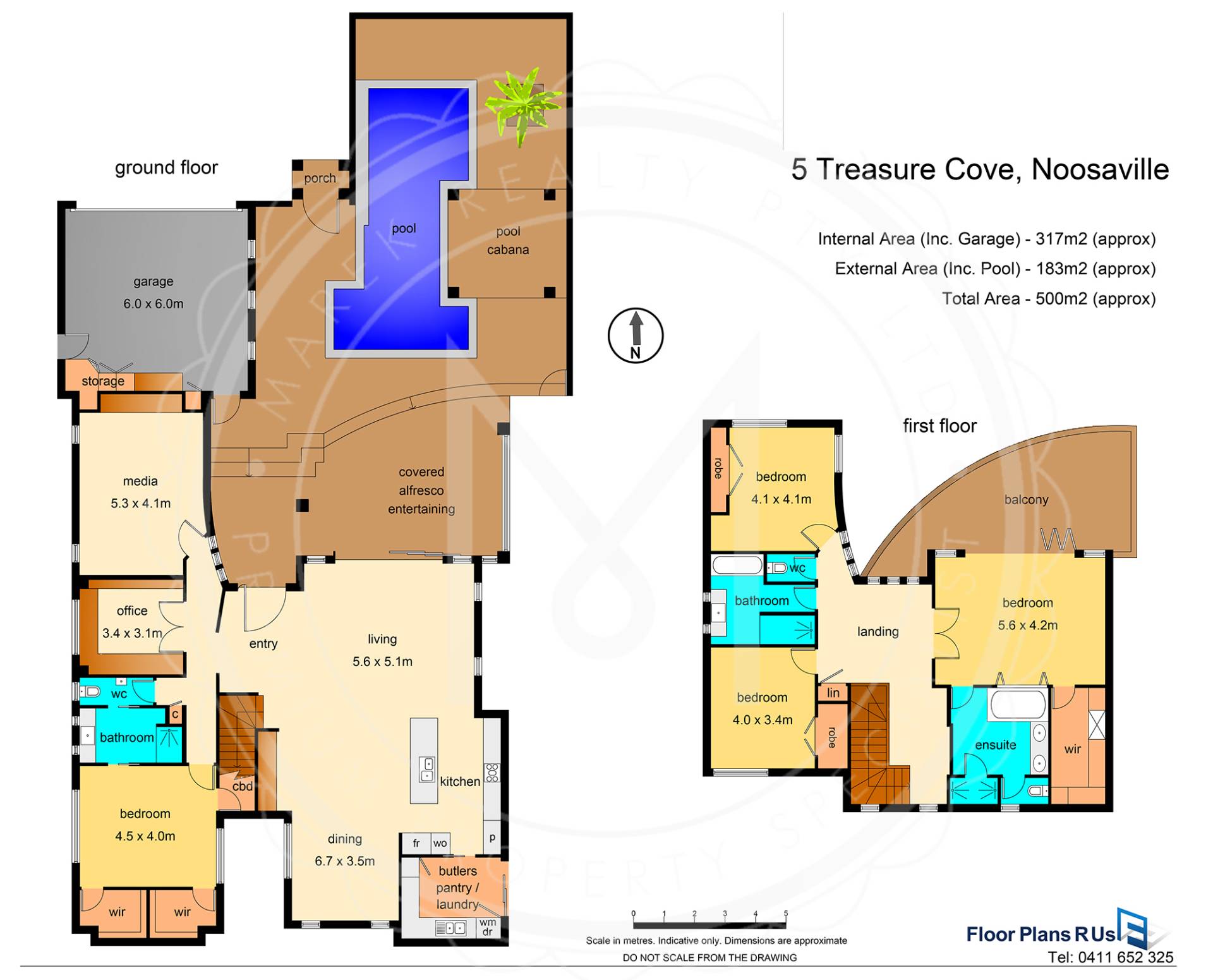 On the first floor is the grand master suite complete with gorgeous en-suite and private balcony overlooking the pool, two other generous robed rooms and the well appointed main bathroom with separate toilet.