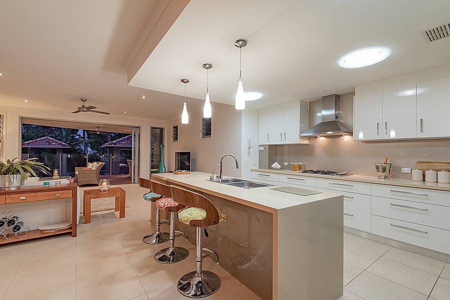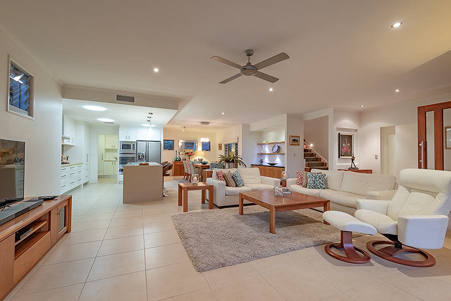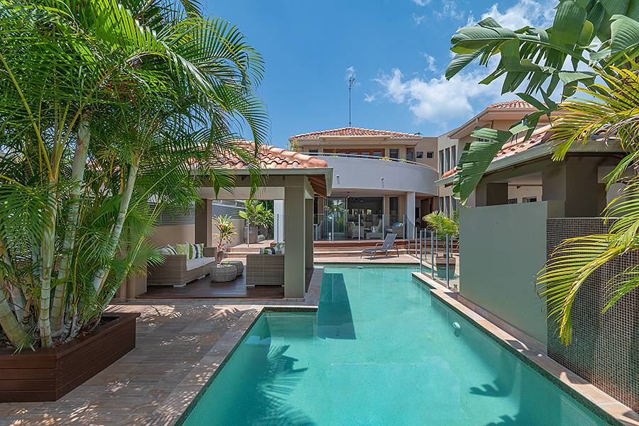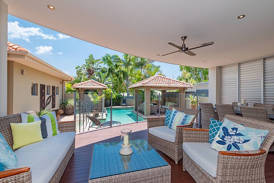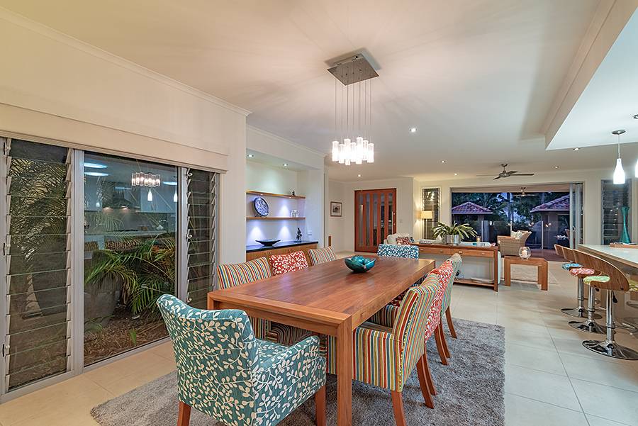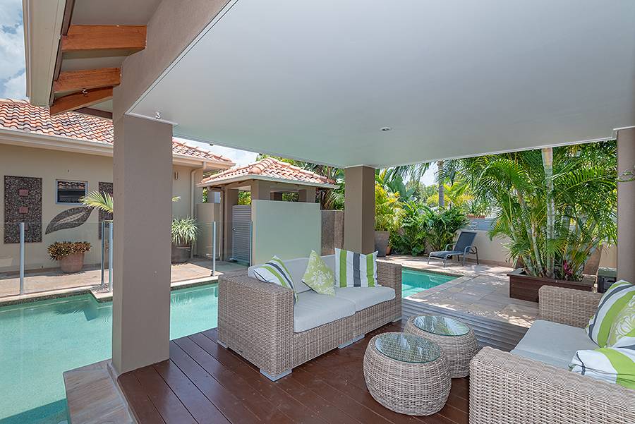 A stylish gated entry opens up to your resort style swimming pool and cabana, surrounded by low maintenance tropical planting. Dip a toe in the water while lounging poolside or keep an eye on the kids (and avoid the splashes) from the undercover entertaining terrace at the front of the house.