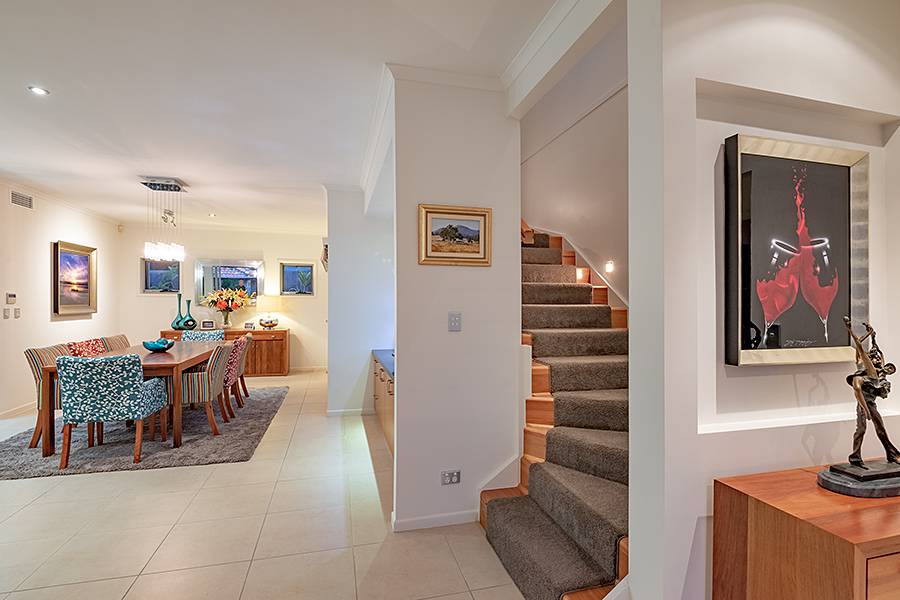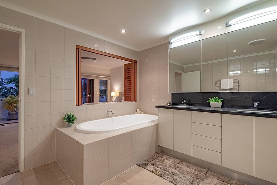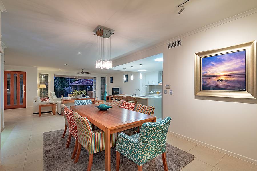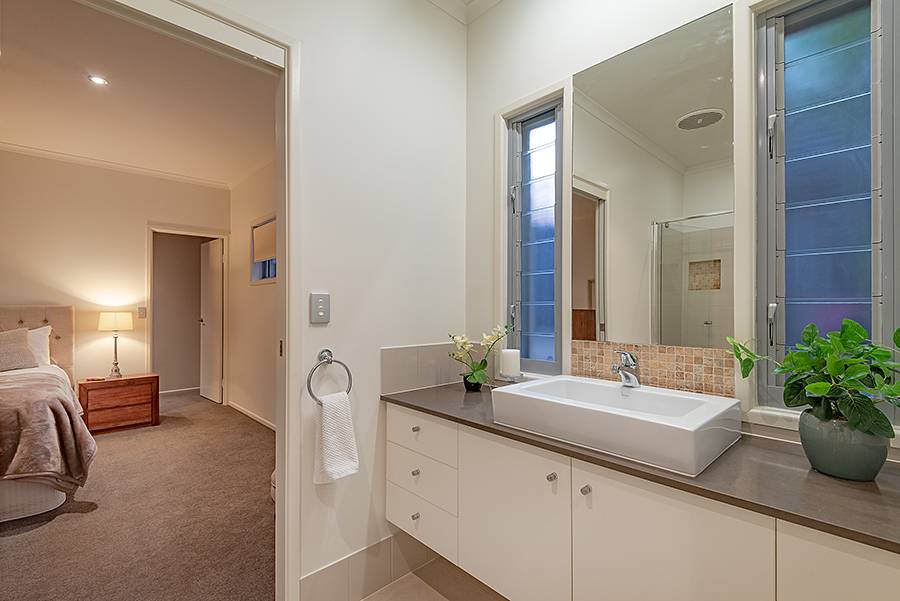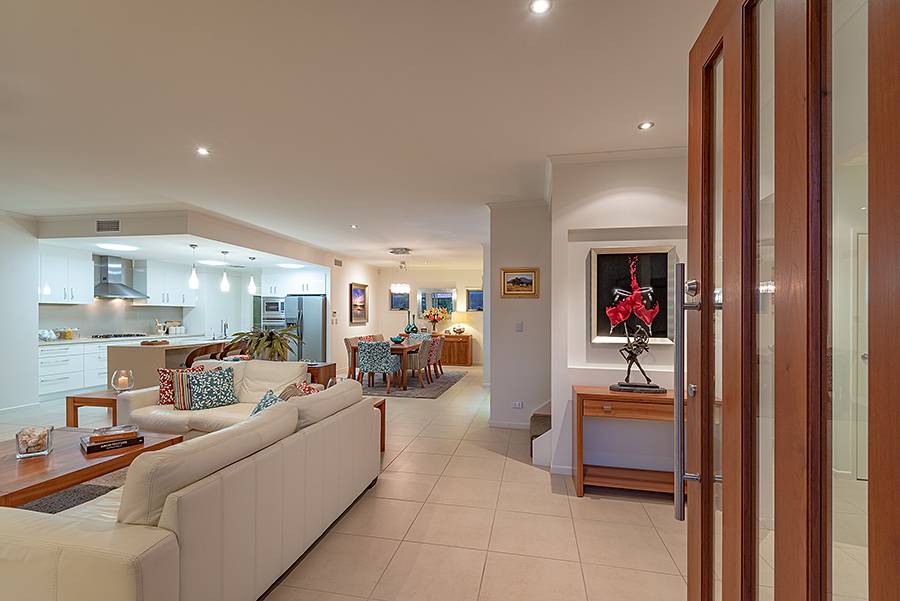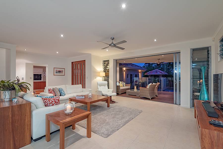 A stylish gated entry opens up to your resort style swimming pool and cabana, surrounded by low maintenance tropical planting. Dip a toe in the water while lounging poolside or keep an eye on the kids (and avoid the splashes) from the undercover entertaining terrace at the front of the house.