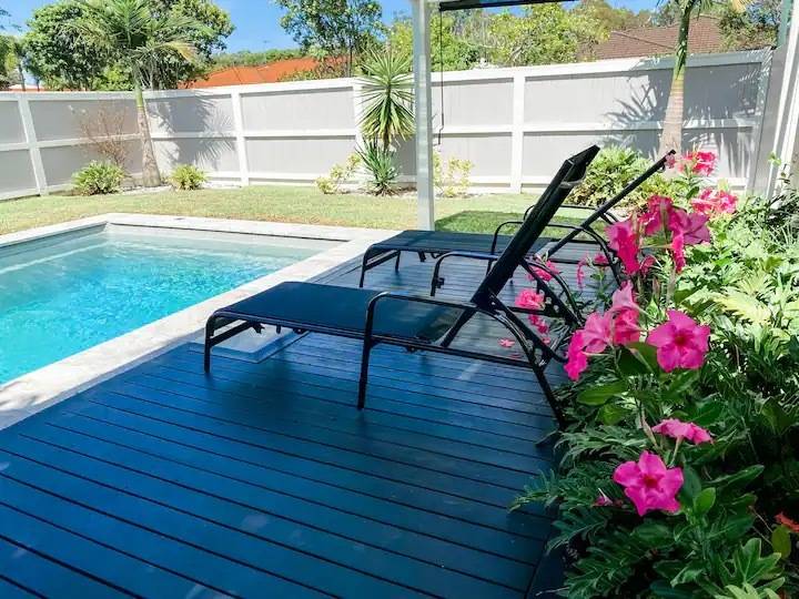 The home is offered fully furnished for a lease until mid December 2025.  It has a versatile layout with the kitchen being the centre point of the home, with separate living and family rooms on either side.  There is a formal dining room that is currently set up as a study or kids play area.  The air-conditioned family room and master bedroom both open out to the private rear deck.  It is tastefully furnished and you will love spending time either relaxing by the pool or dining in the alfresco patio off the family room.