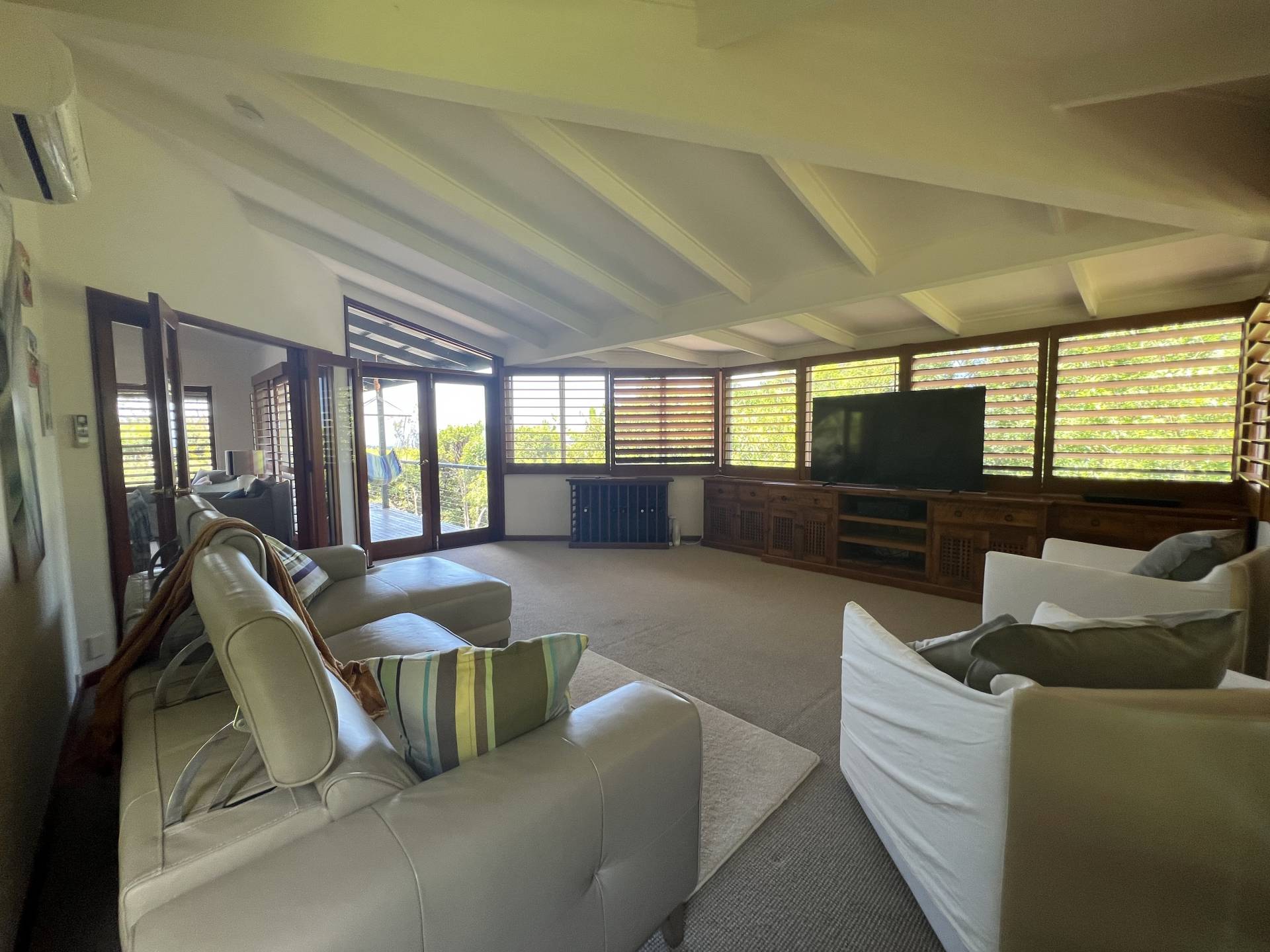 Spacious open plan living, dining and kitchen with lofty cathedral ceilings and extra wide bifold doors opening on to an extensive deck with gorgeous views across to the ocean and Noosa Heads.   Separate media room also with access to the front deck where you will spend most of your time enjoying the view with a cuppa or a glass of something cold.