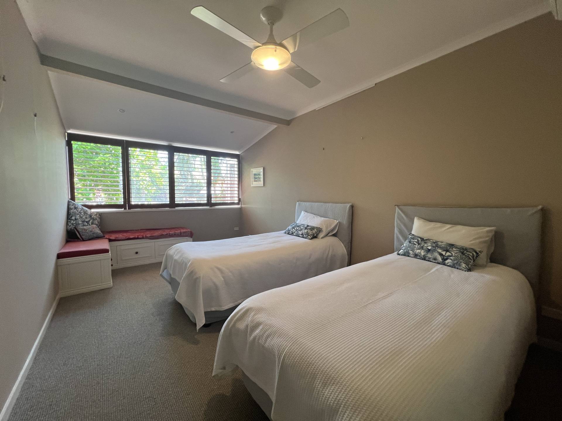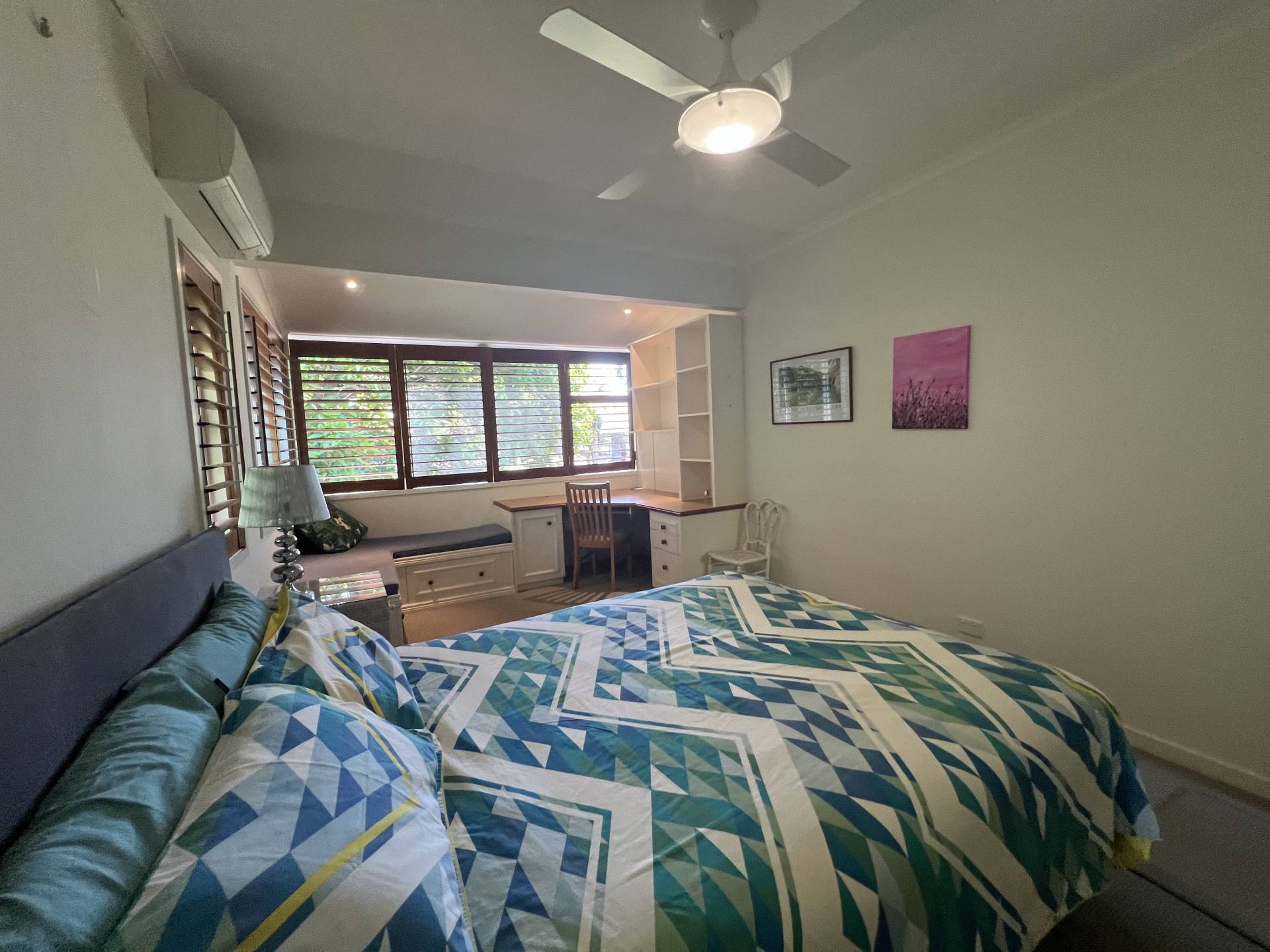 3 large bedrooms are on offer.  The master suite has a huge bathroom with double vanities and shower, and a separate study adjacent to the walk in robe.  Both other bedrooms have built in desks and good storage space - one with walk in robe, the other with a built in cupboard .  All rooms have carpet, fans and air-conditioning.  There is a good size main bathroom with shower and toilet.