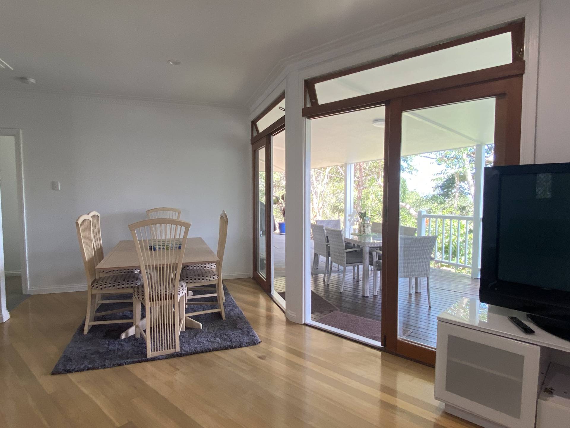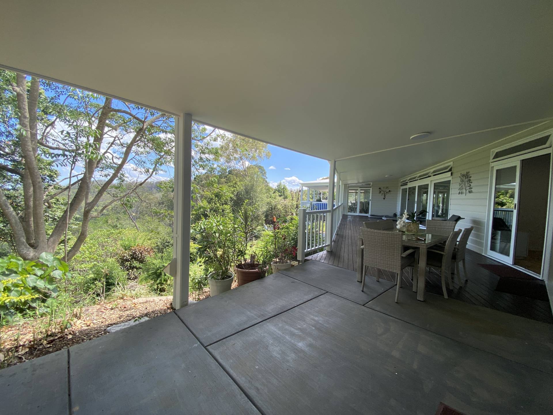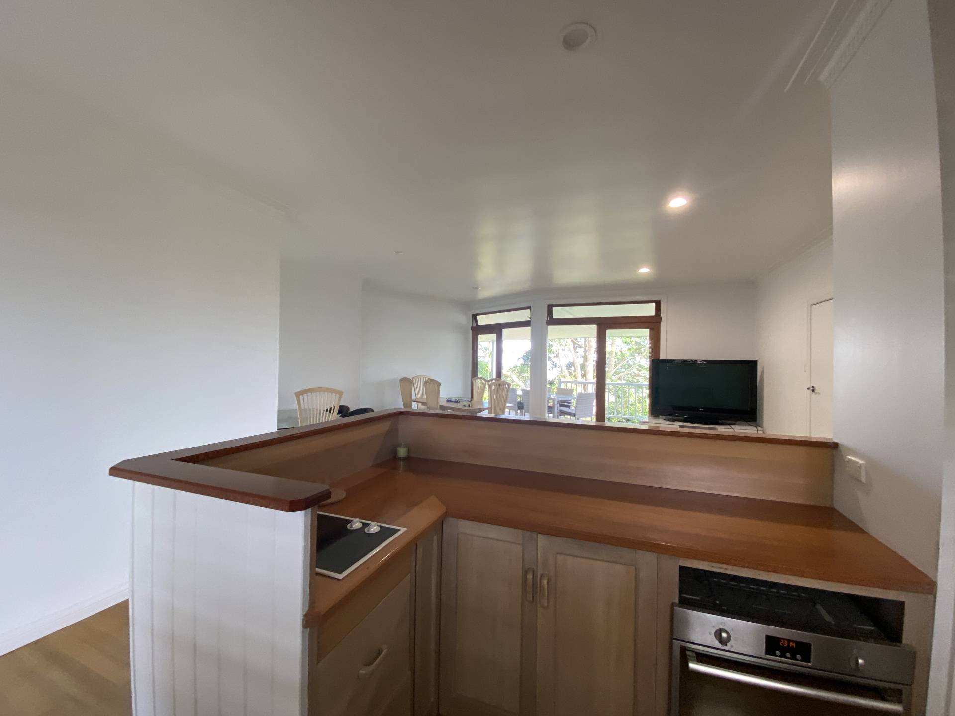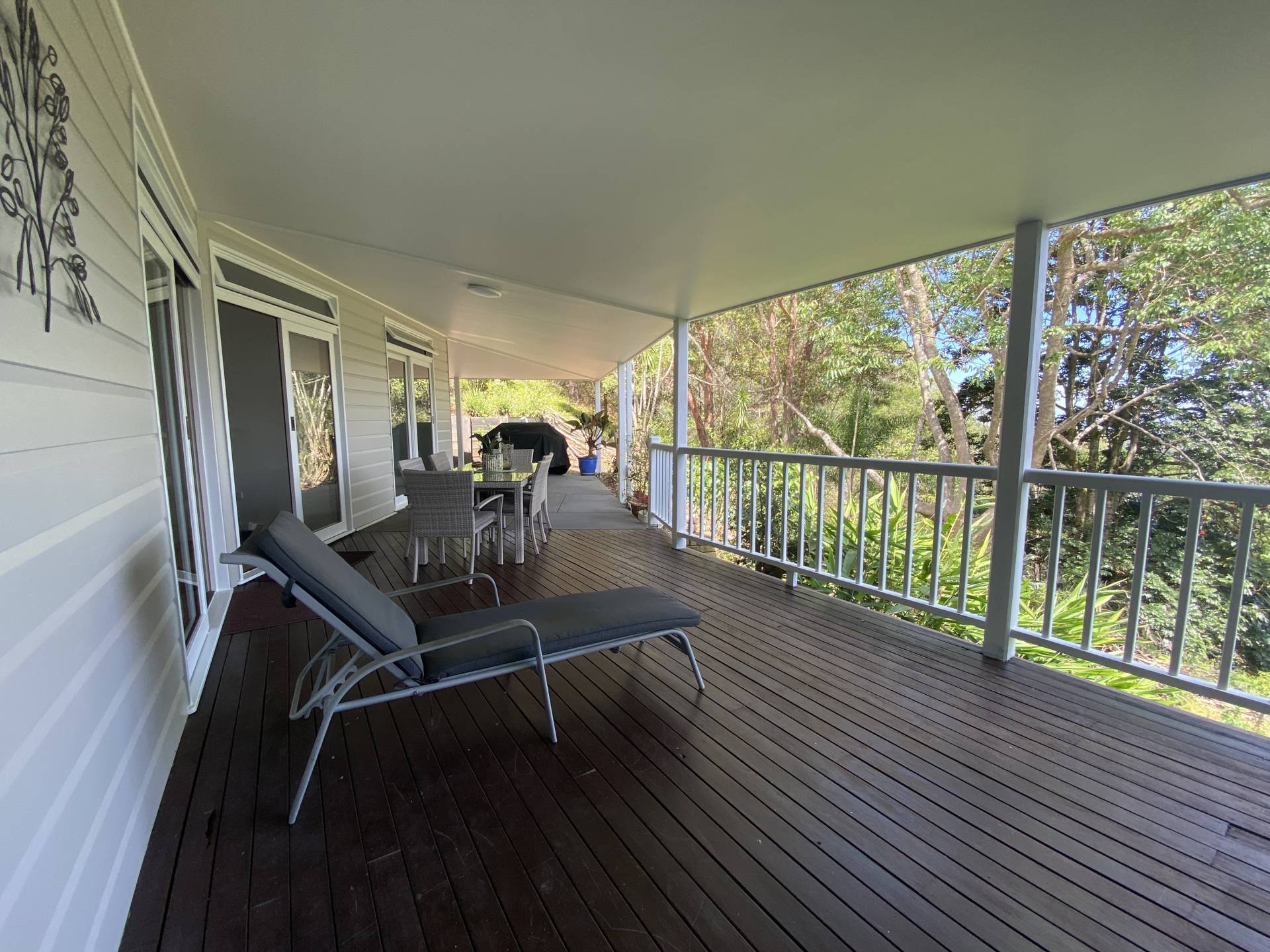 The front timber deck is a lovely spot to relax, and around the side of the flat is another patio with BBQ and separate seating.  The wrap around patio continues around to the front door and entry.