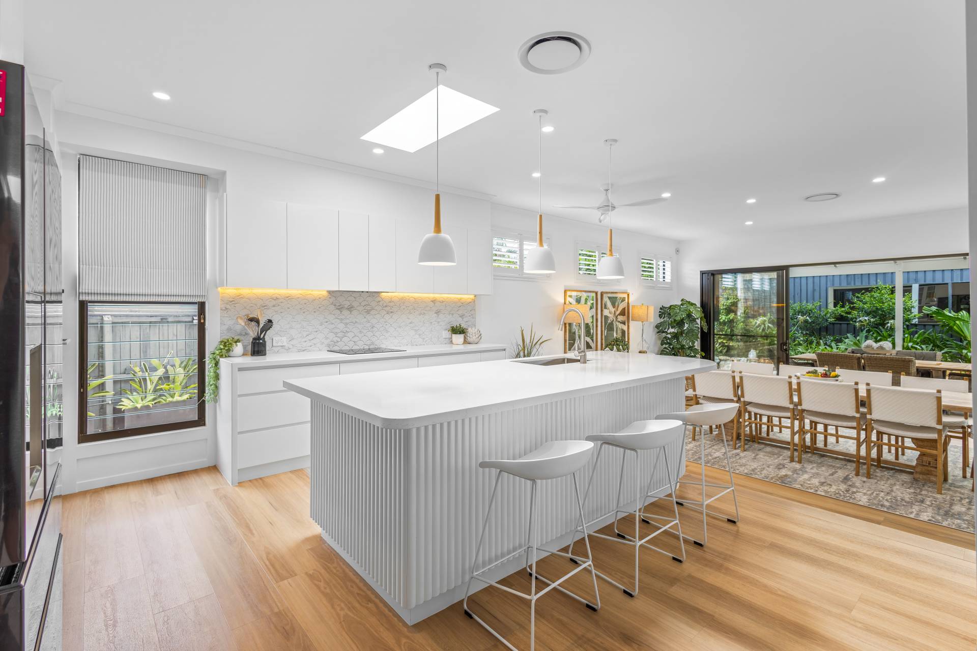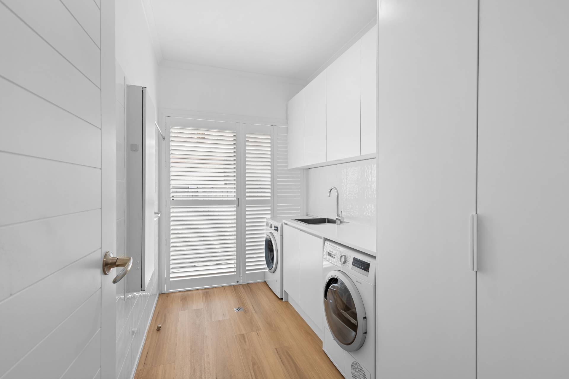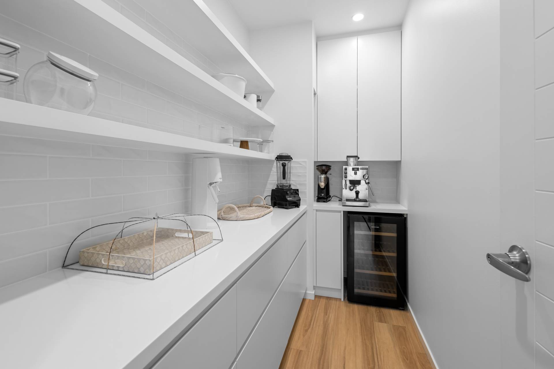 The kitchen is one of the masterpieces of the home, with beautiful splash back tiles, stone bench tops and island bench breakfast bar.  It is open to the living and dining room so the chef can put the final touches on delicious meals while still engaging with everyone around them.  Quality appliances, ice and water dispensing fridge, integrated dishwasher, and more than enough lovely crockery and glassware to suit the dinner party planner of the family.  A few steps down from the kitchen is the formal dining area which is extremely elegant and set up to entertain a party of ten.  A huge Butler's pantry is adjacent to the kitchen including wine fridge and ample storage and shelving, and the laundry is opposite the Butler's pantry.