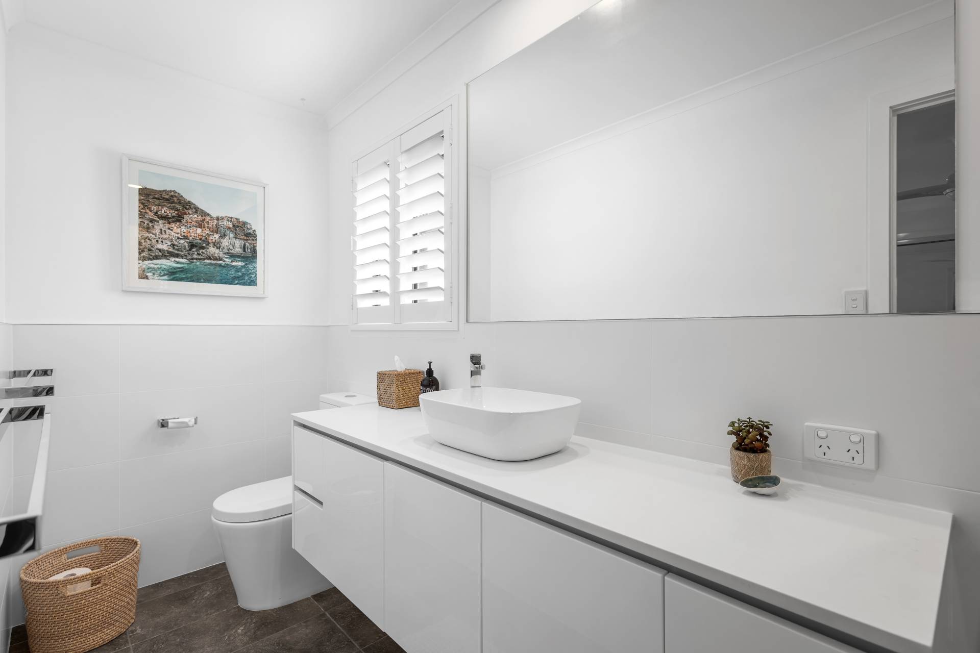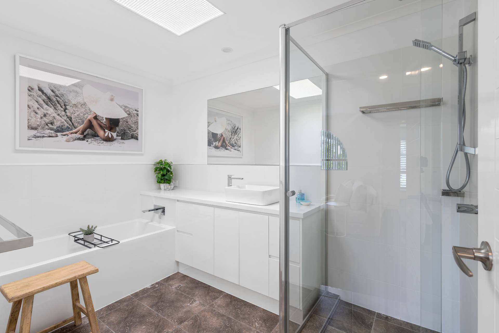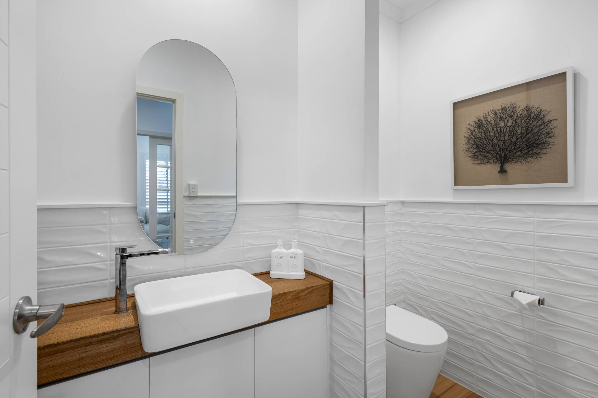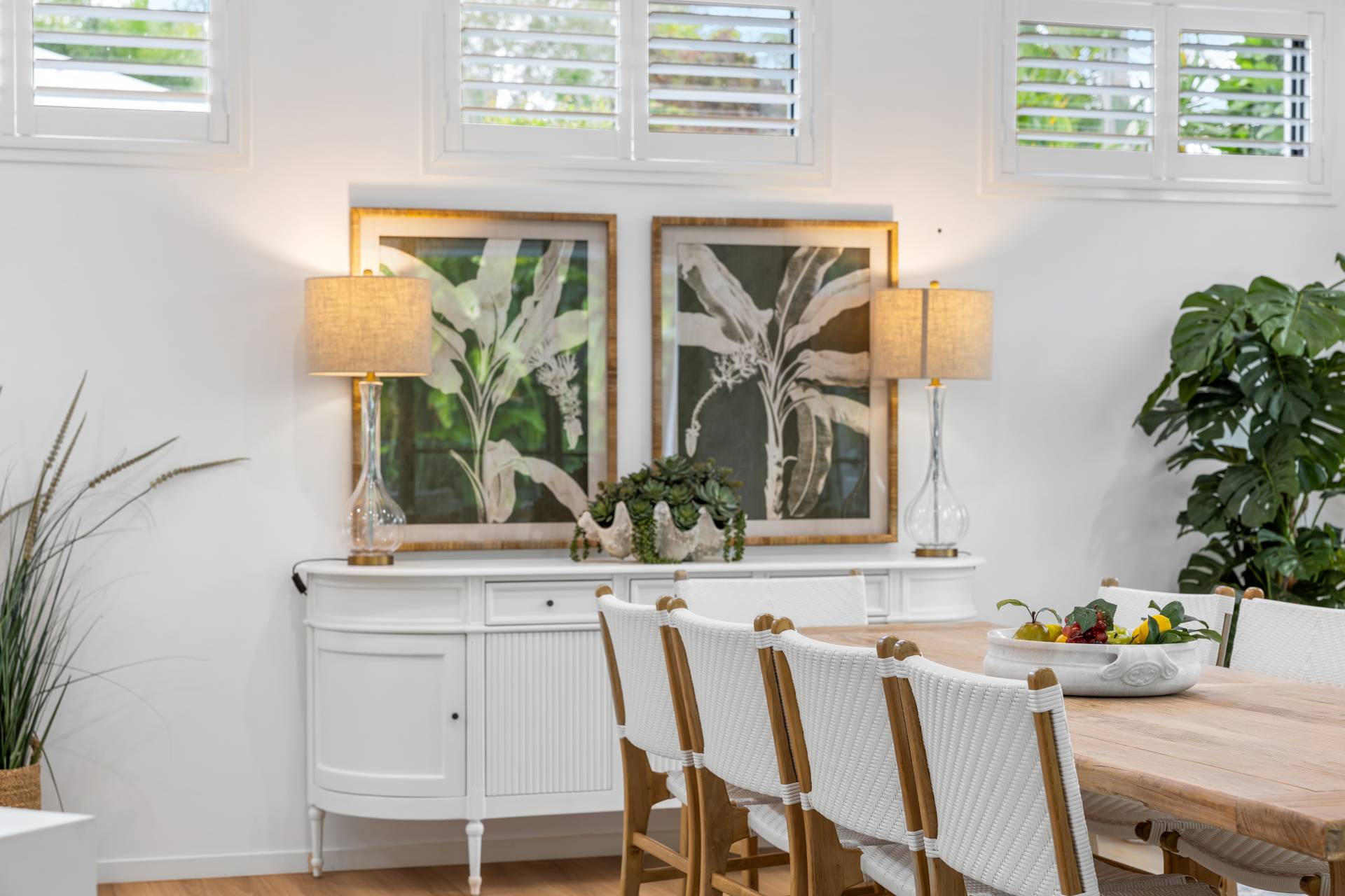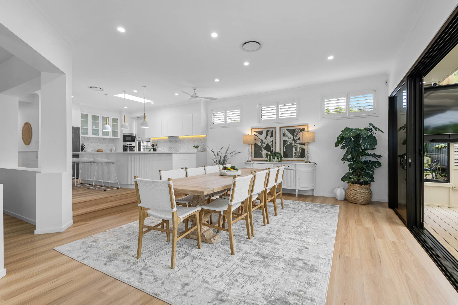 Double door entry leads you to a welcoming foyer which looks straight out across the oversize lounge to the expansive entertaining areas beyond.  The lounge has very comfortable sofas (one with electric reclining optional) to enjoy the large screen television with Sonos sound system or relax to the flicker of the flames of the built-in feature gas fireplace.  Sliding glass doors lead out to the undercover entertaining areas where you will spend most of your time.  Adjacent to the pool there are several sofas and chairs set up to mingle and chat, while outside the dining room is a large dining table and chairs where you can enjoy a feast and a cold beverage while watching your favourite type of footy on the 75 inch TV (also with Sonos sound system!)