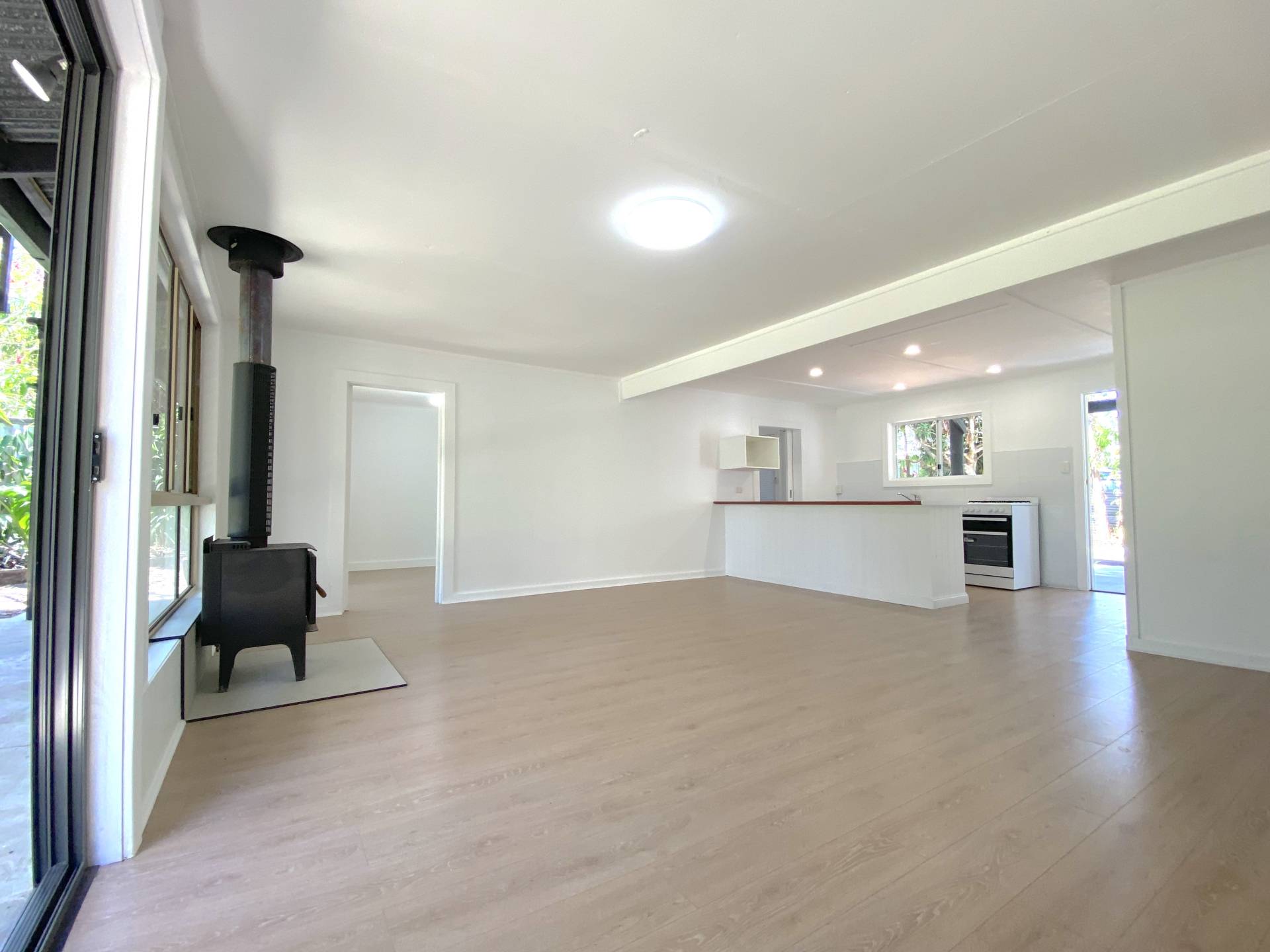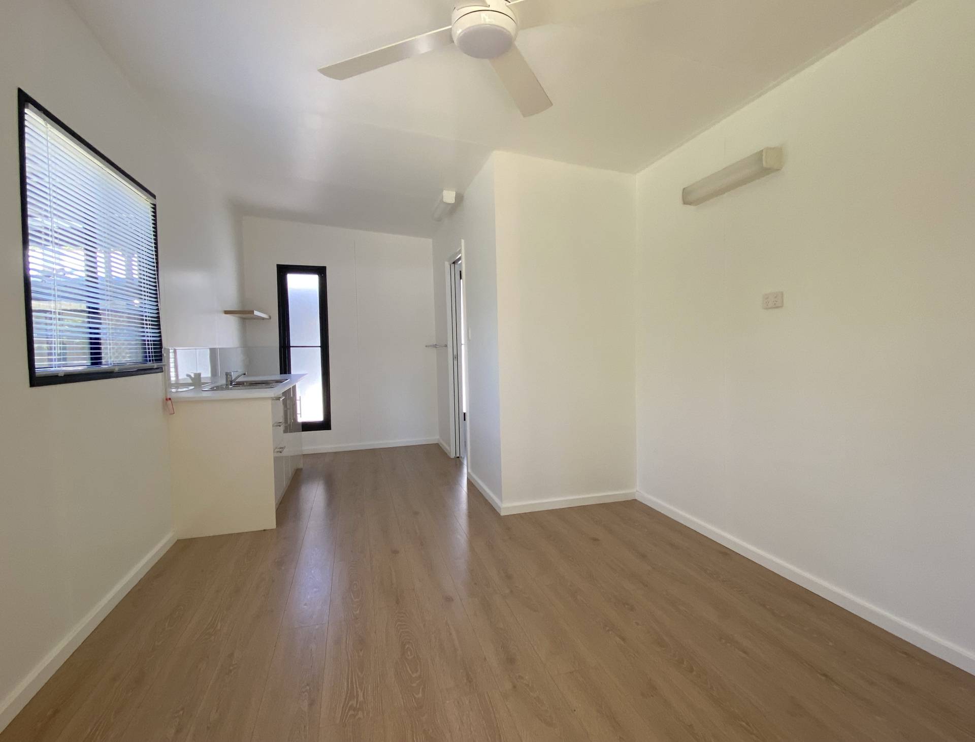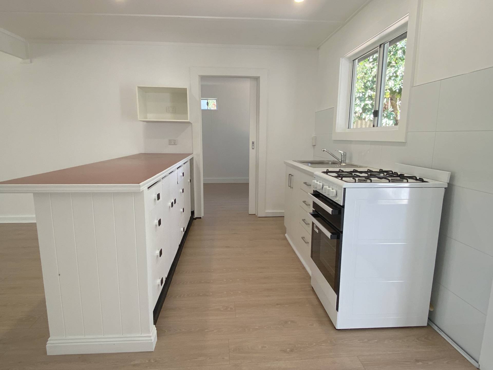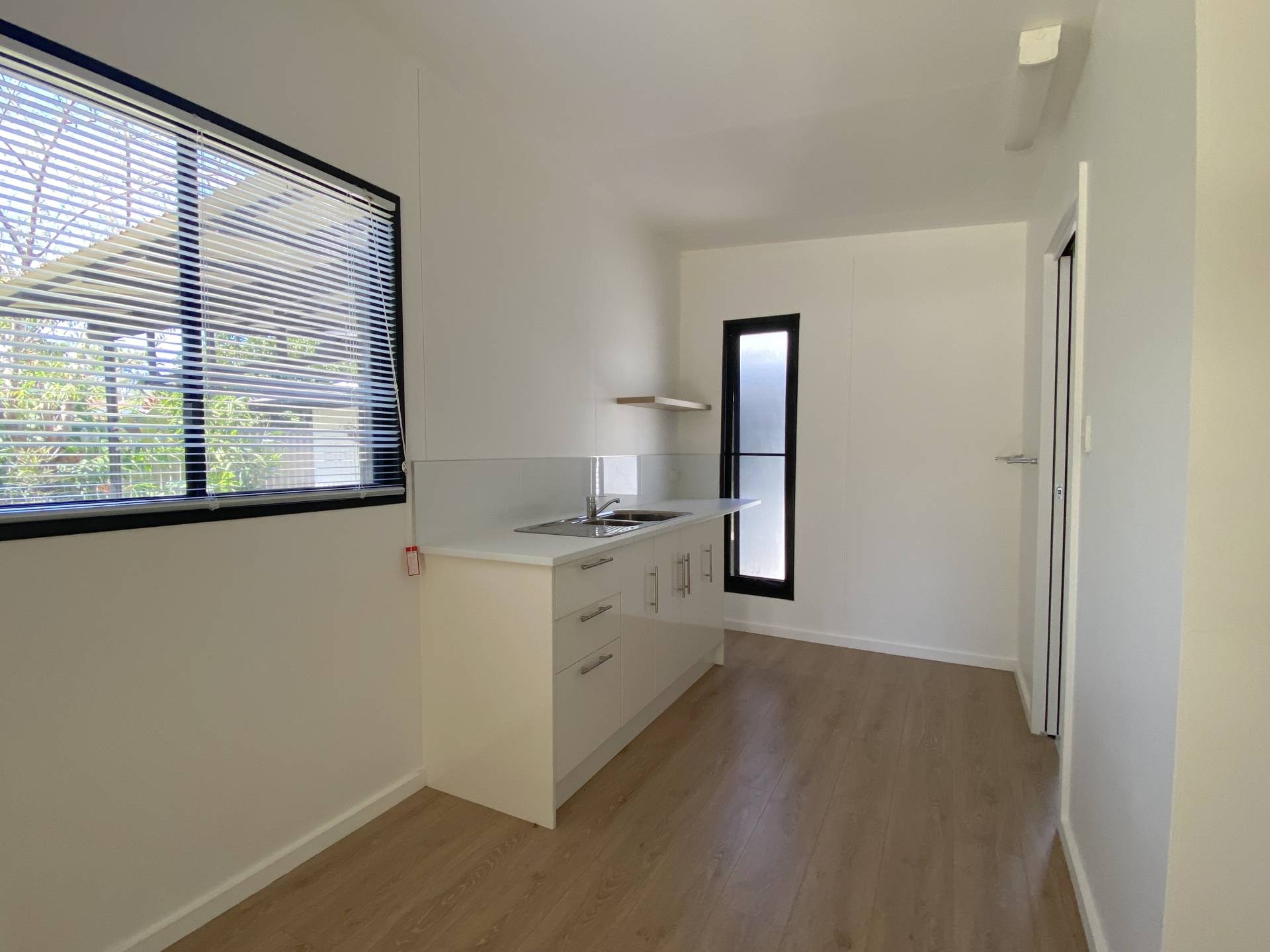 The main home has a lovely and bright open plan living complete with wood burning fire for the cooler nights and air-conditioning to help in summer. Kitchen with good bench space, storage and a gas free-standing oven and stove. 3 bedrooms, 1 with large built-in cupboards, and 2 having access out to the front or the rear patio. Tones are neutral throughout with lots of natural light, screens for cross breezes and easy care plank flooring.