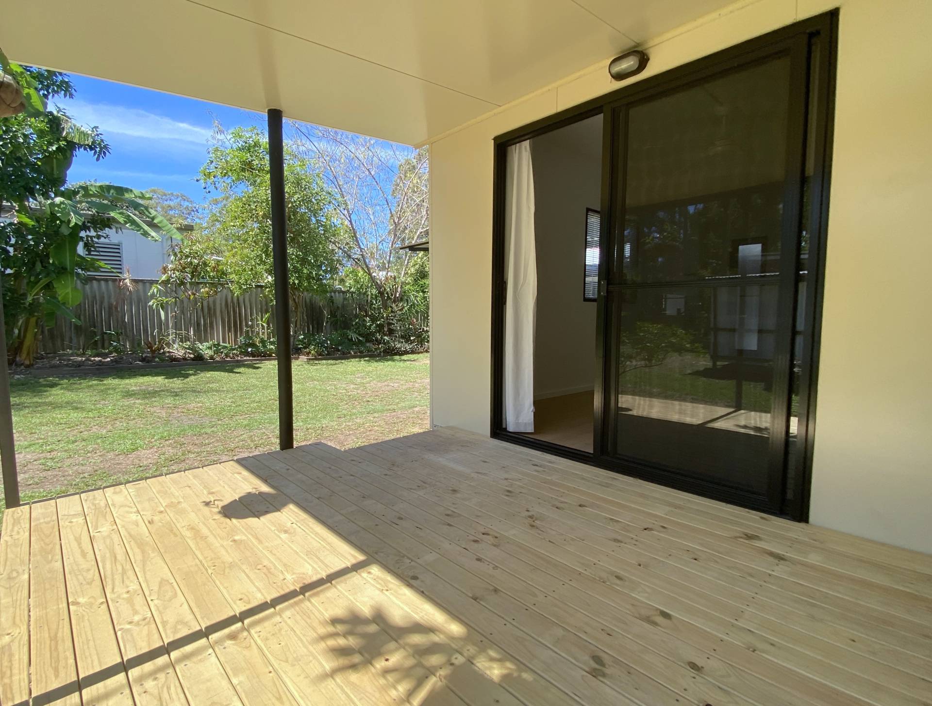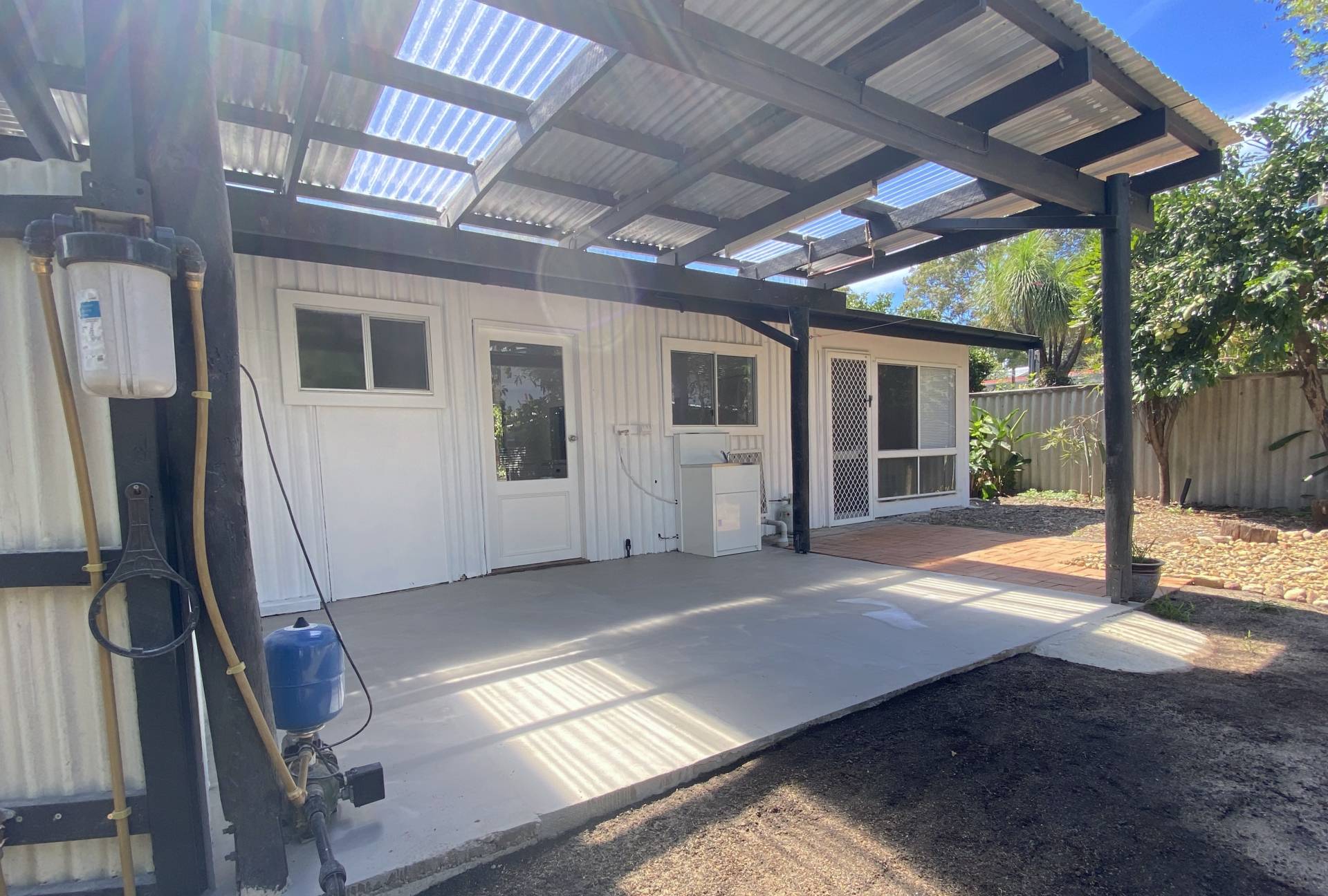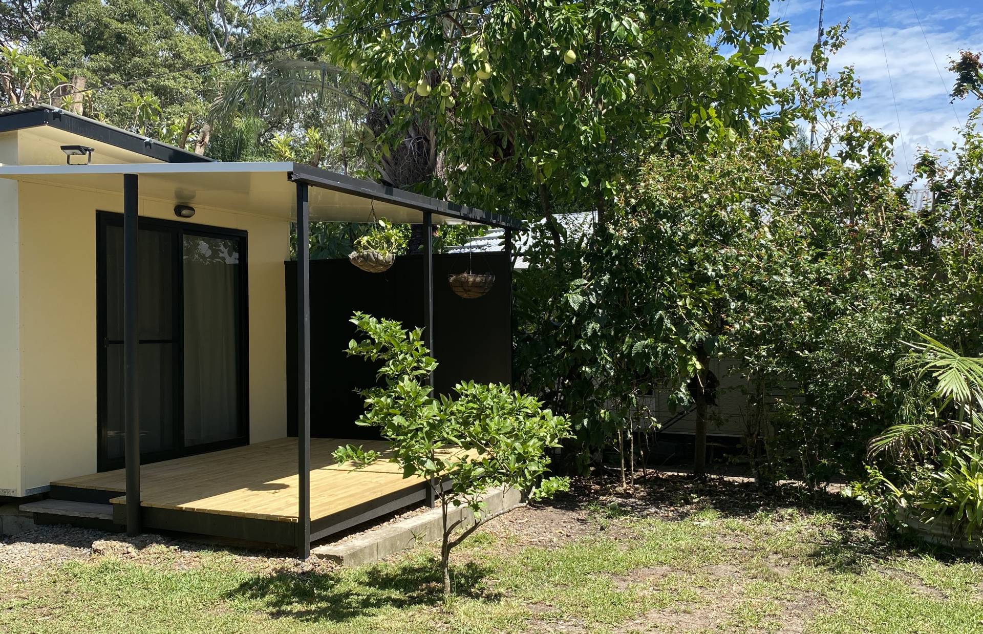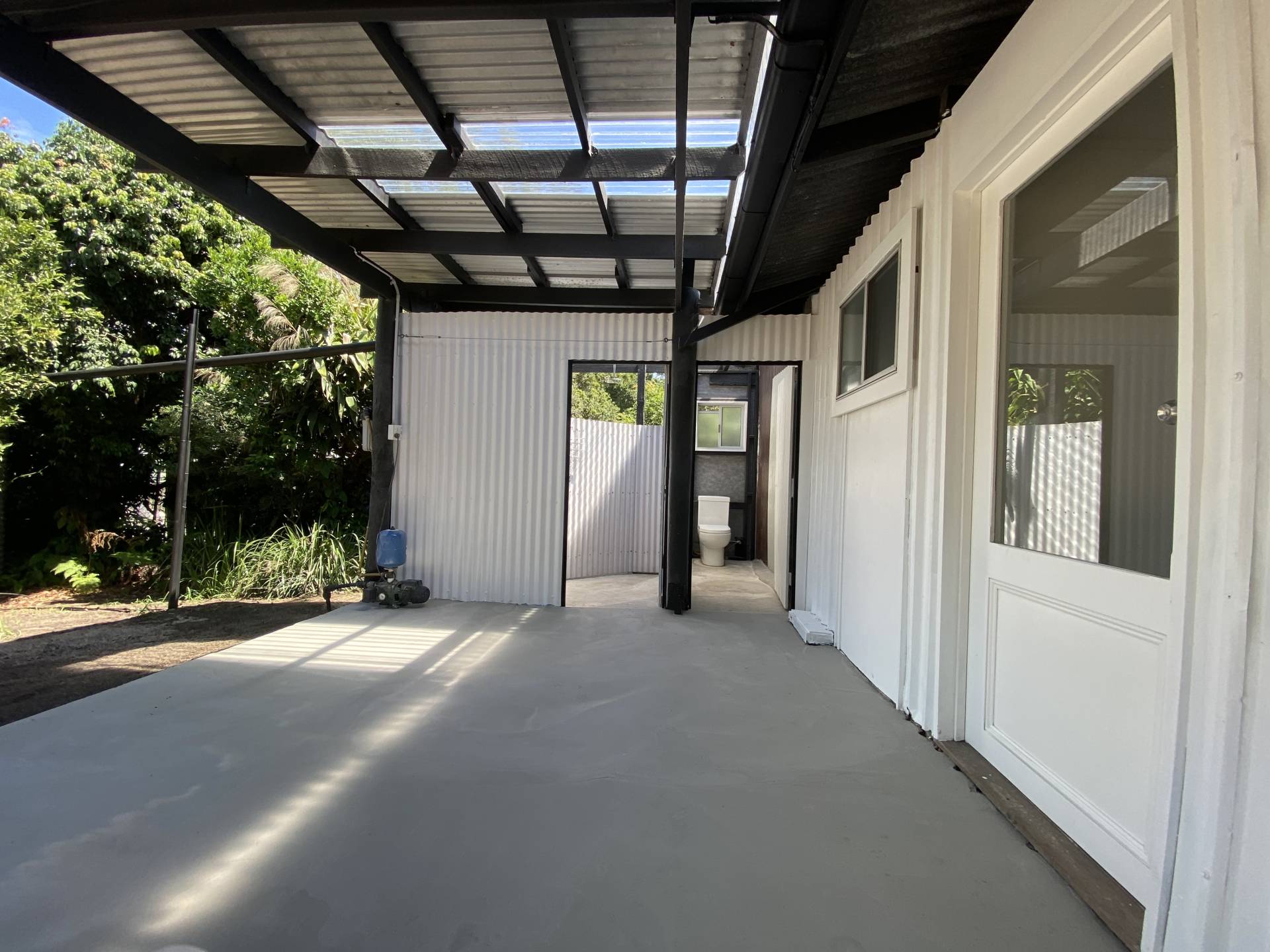 The main home has a lovely and bright open plan living complete with wood burning fire for the cooler nights and air-conditioning to help in summer. Kitchen with good bench space, storage and a gas free-standing oven and stove. 3 bedrooms, 1 with large built-in cupboards, and 2 having access out to the front or the rear patio. Tones are neutral throughout with lots of natural light, screens for cross breezes and easy care plank flooring.