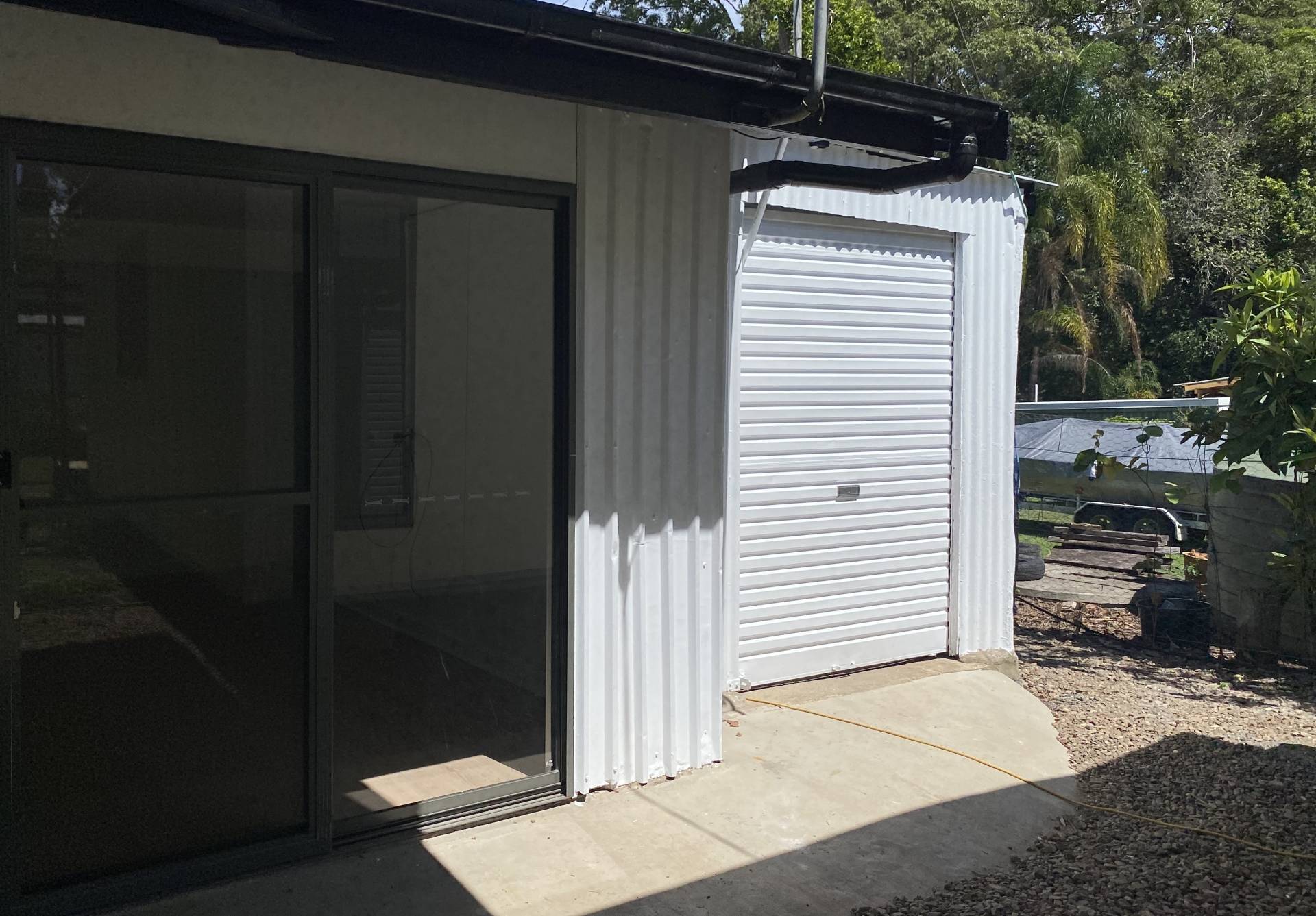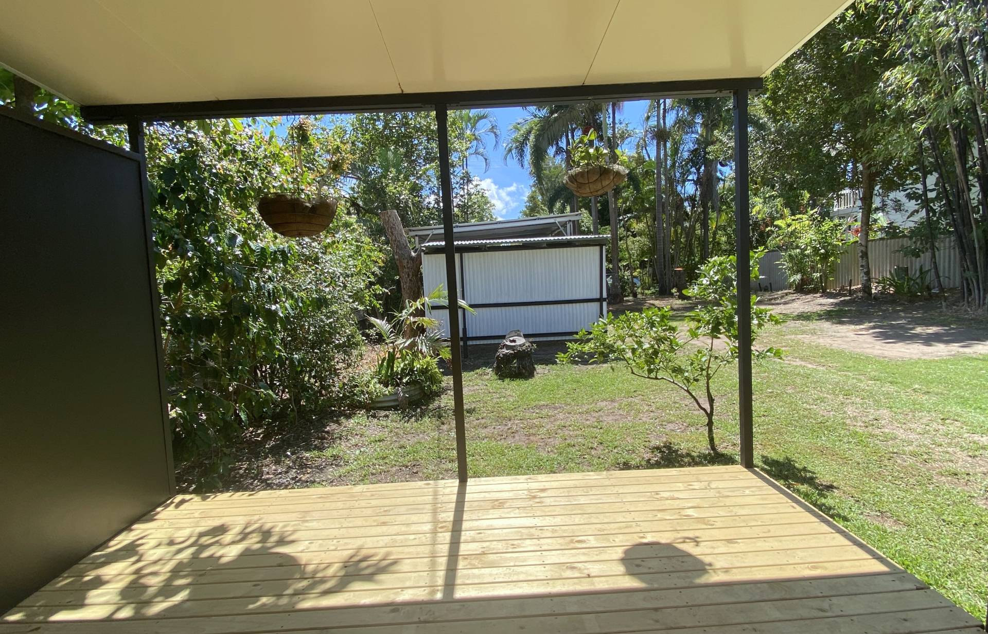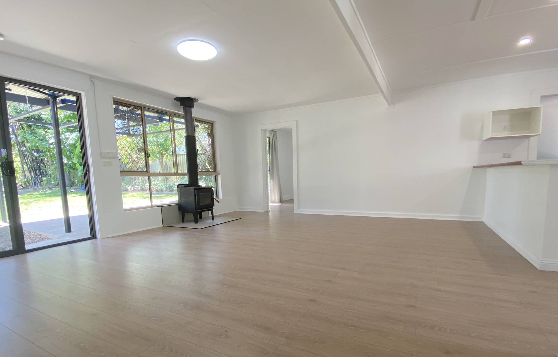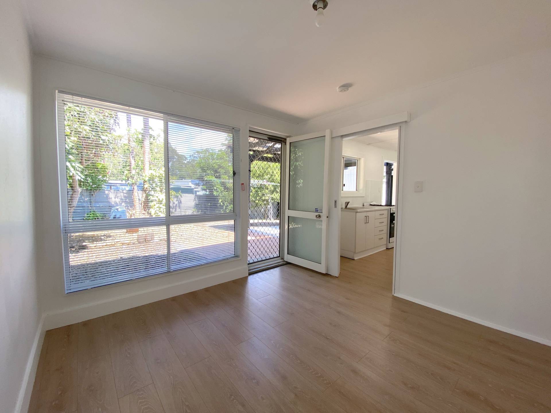 The main home has a lovely and bright open plan living complete with wood burning fire for the cooler nights and air-conditioning to help in summer. Kitchen with good bench space, storage and a gas free-standing oven and stove. 3 bedrooms, 1 with large built-in cupboards, and 2 having access out to the front or the rear patio. Tones are neutral throughout with lots of natural light, screens for cross breezes and easy care plank flooring.