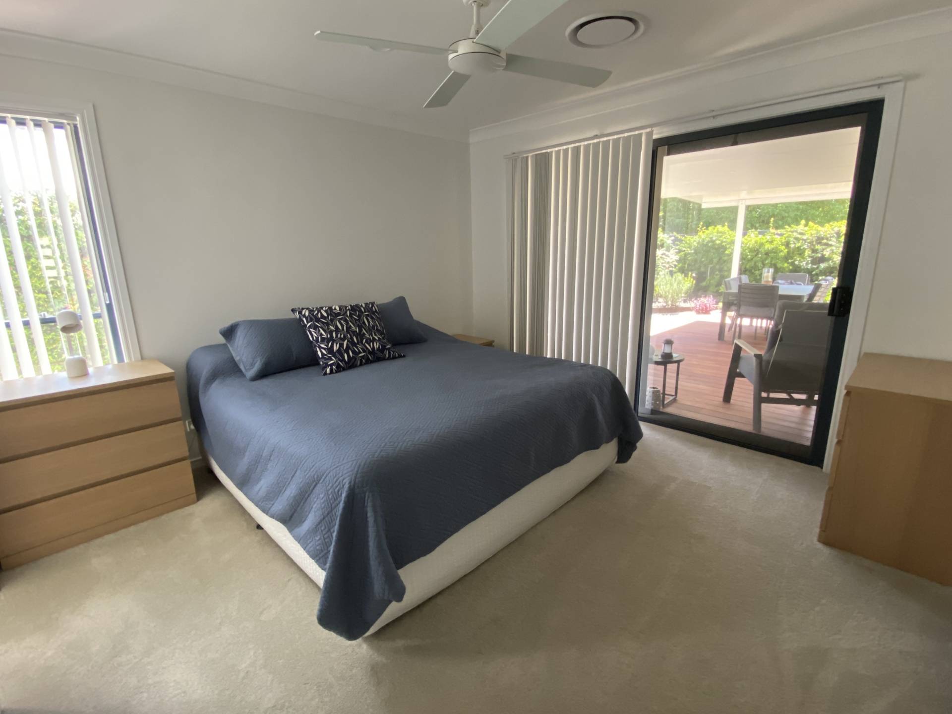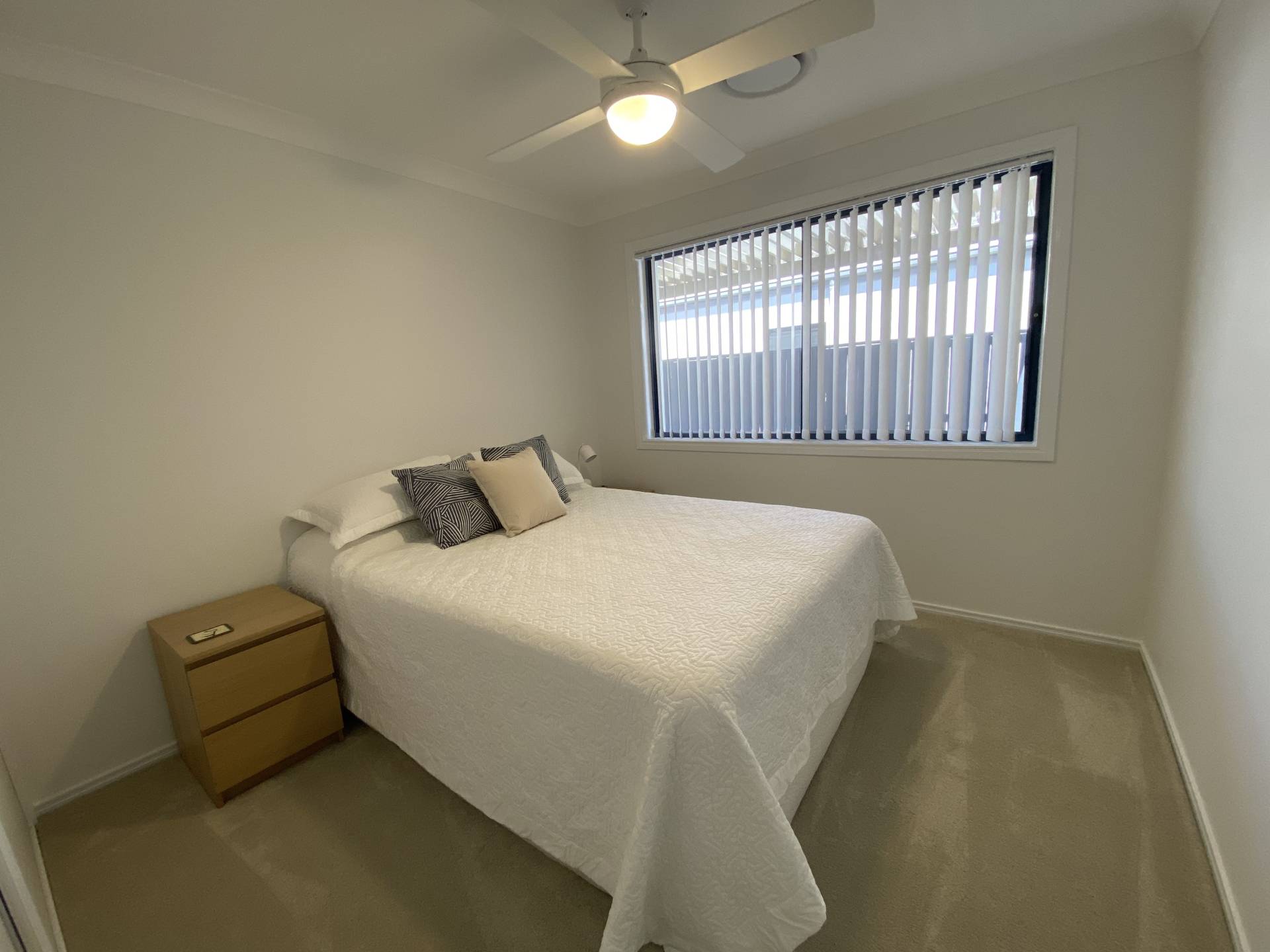 There are 3 bedrooms on offer as well as a generous study. The master has a King size bed, walk in robe and ensuite, as well as sliding doors out to the private patio. The other 2 bedrooms each have Queen beds and built in robes. There is a lovely main bathroom with separate toilet, and an internal laundry completes the picture.  Reverse cycle air-conditioning throughout the home will keep you comfortable no matter the weather!